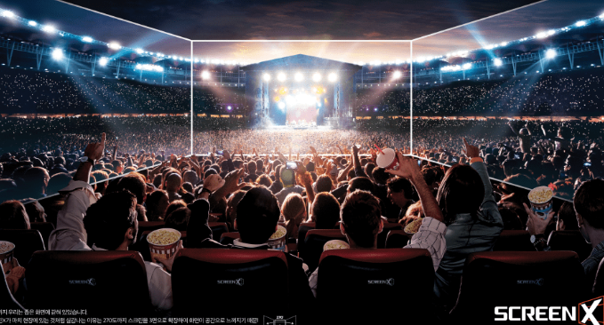 ScreenX는 기존의 영화 상영 방식과는 차별화된 특별한 경험을 제공합니다. 정면 스크린뿐만 아니라 양옆의 벽면을 활용하여 270도에 걸친 넓은 시야를 제공해 관객이 영화 속 장면에 더 깊이 몰입할 수 있게 합니다.